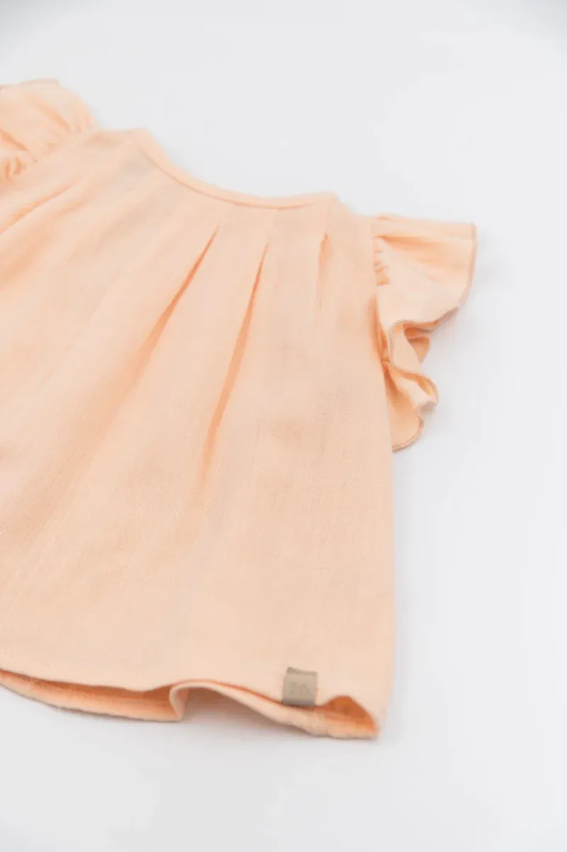 Los suaves volantes de las mangas le dan un toque romántico, mientras que el tejido de bambú y algodón natural garantiza la transpirabilidad y el confort sobre la piel. La calidad Made in Italy se refleja en los finos detalles y el cómodo ajuste, ideal para quienes buscan un estilo refinado y natural.