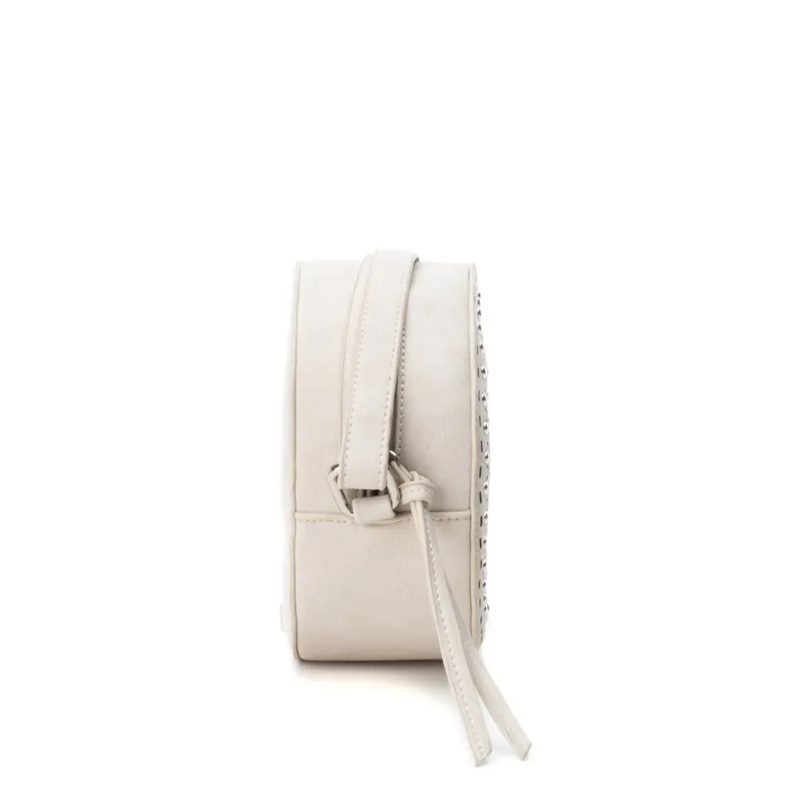 Bolso de la marca Refresh redondo con troquelado en forma de flor y tachas metalicas decorativas. Bolsillo interior y asa ajustable.