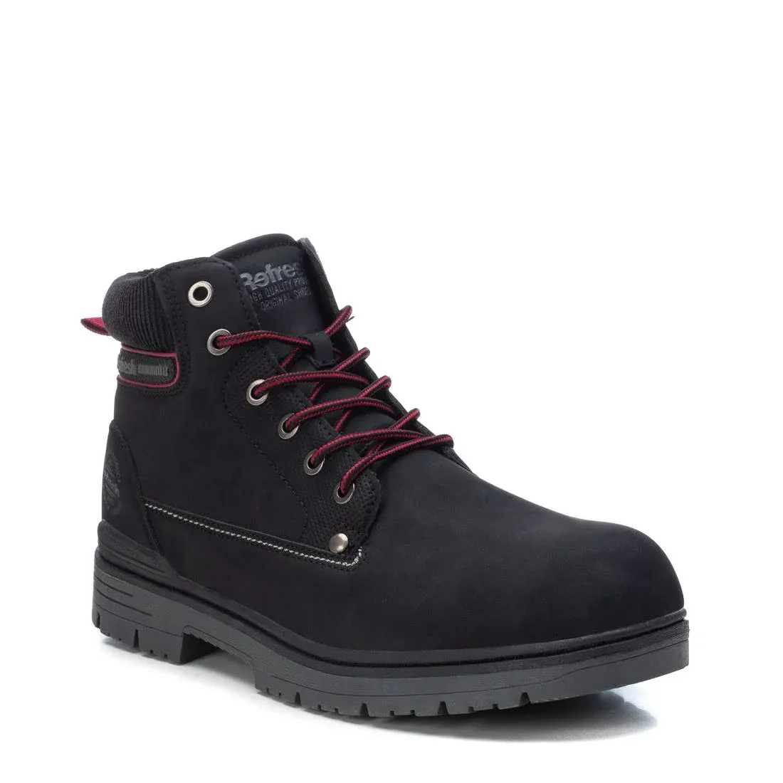 Botín de hombre de la marca Refresh con suela de goma de 3 cm. Cierre con cremallera lateral y cordones para mejorar el ajuste al pie. Botín tipo militar fabricado en material sintético muy ligero y de fácil limpieza. Un botín básico muy cómodo para esta temporada. Te combina con cualquier estilo. Puntera redonda.