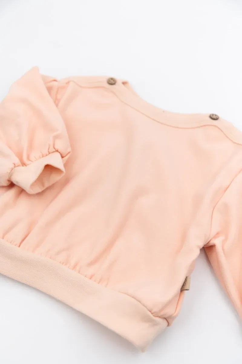 Las mangas voluminosas y los puños elásticos añaden un toque de elegancia sin comprometer la libertad de movimiento. El corte suave hace que esta camiseta sea ideal para llevar con cualquier conjunto, desde días de partido hasta ocasiones especiales. Una prenda versátil, diseñada para acompañar a los más pequeños con dulzura y practicidad.