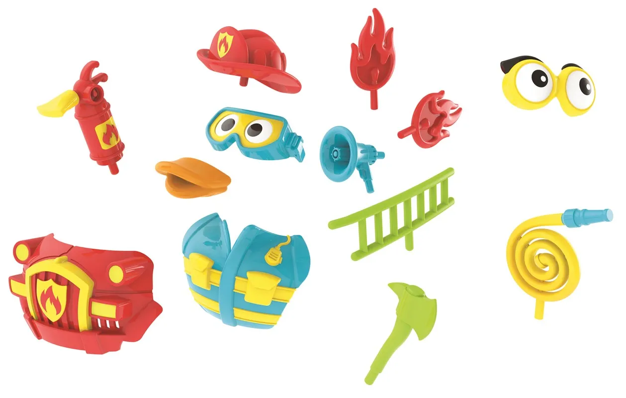 Este pato dispone de múltiples opciones de juego y combinaciones. Gira la boca de incendios o quítale los pies al pato y cambiará su dirección en la bañera. Incluye un recipiente con orificios, que se adhiere a la bañera, para almacenar el pato y sus accesorios y para evitar la formación de moho una vez haya terminado el baño.