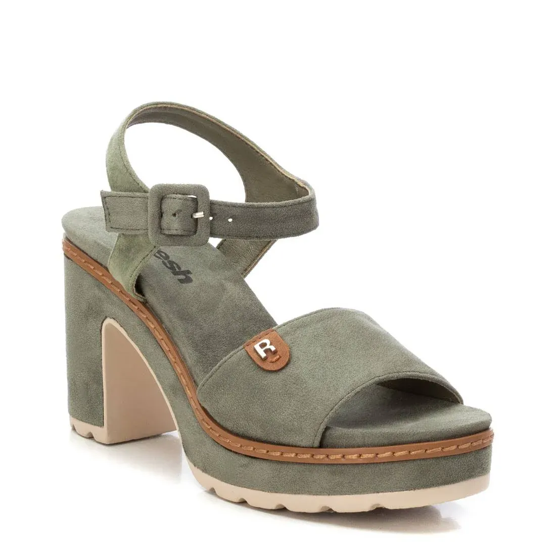 Sandalia de mujer, de la marca Refresh. Fabricada en antelina. Diseño de pala con pulsera trasera multicolor. Cierre de hebilla forrada del mismo material del corte. Cómoda planta acolchada. Tacón ancho de 10 cm con plataforma. Suela de goma antideslizante. Este modelo ha obtenido el certificado vegano por la organización mundial PETA (Organización de los derechos de los animales).