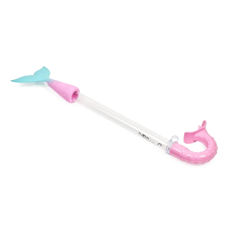 Con su combinación de colores menta y rosa pastel, y una silueta inspirada en cuentos de sirenas, este snorkel es el accesorio perfecto para completar cualquier aventura bajo el agua con magia y seguridad.